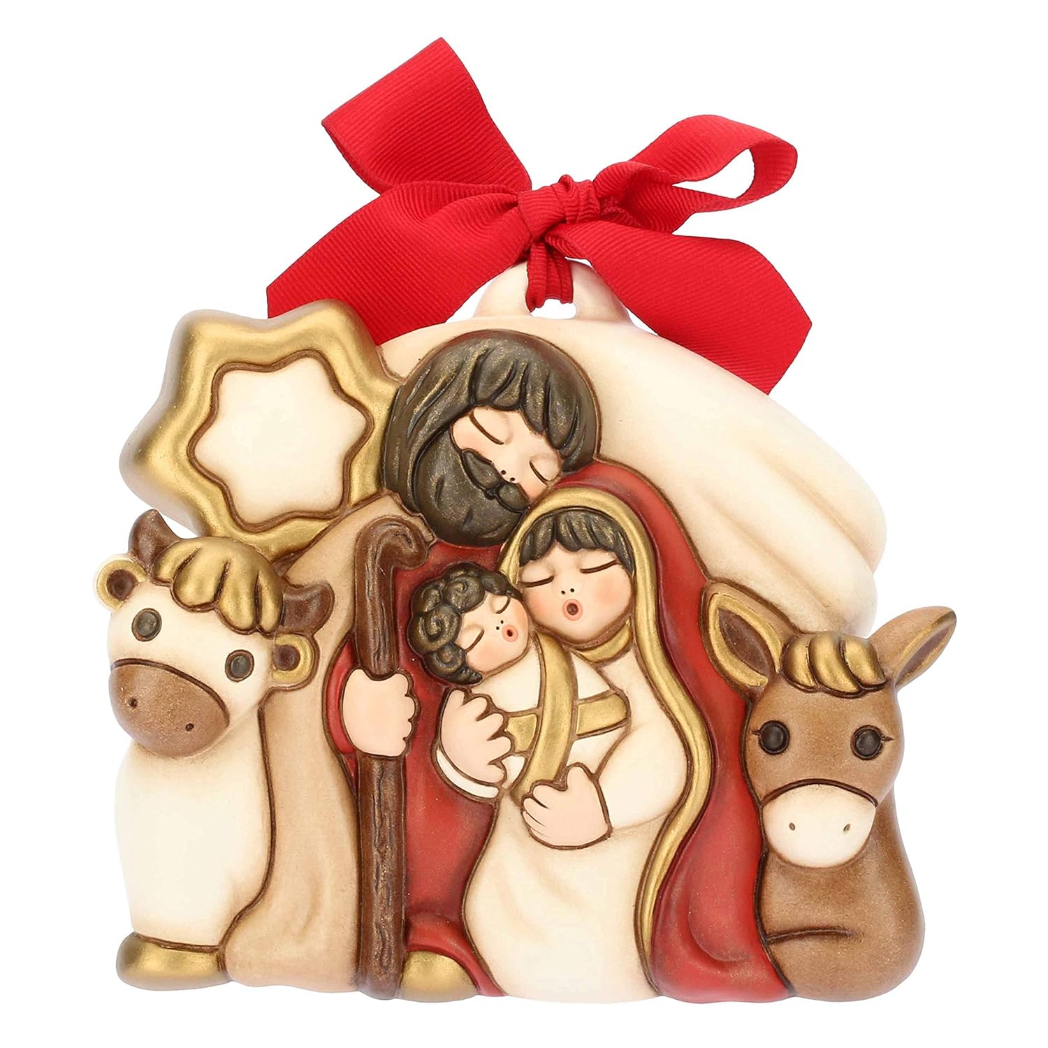 Thun Ceramica Formella Media Sacra Famiglia I Classici Nativita Da Appendere Con Fiocco Rosso