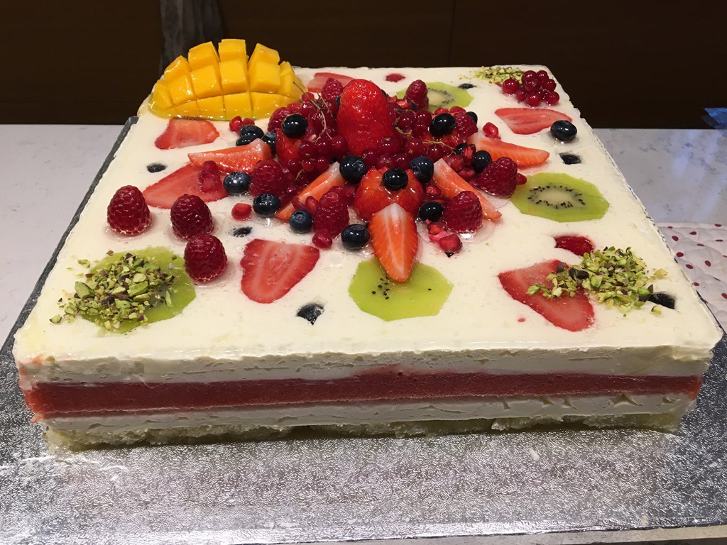 La torta quadro d autore di luca montersino è un dolce con il pan di spagna in cui si fondono i sapori del limoncello della crema chantilly e della frutta.