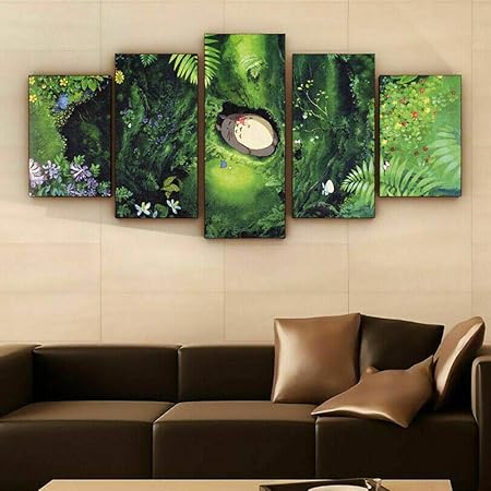 Runtooer Quadro Ghibli Studio Totoro Dormire Stampa Su Tela Xxl Immagini Moderni Murale Fotografia Grafica Decorazione Da Parete 5 Pezzi Amazon It Amazon It