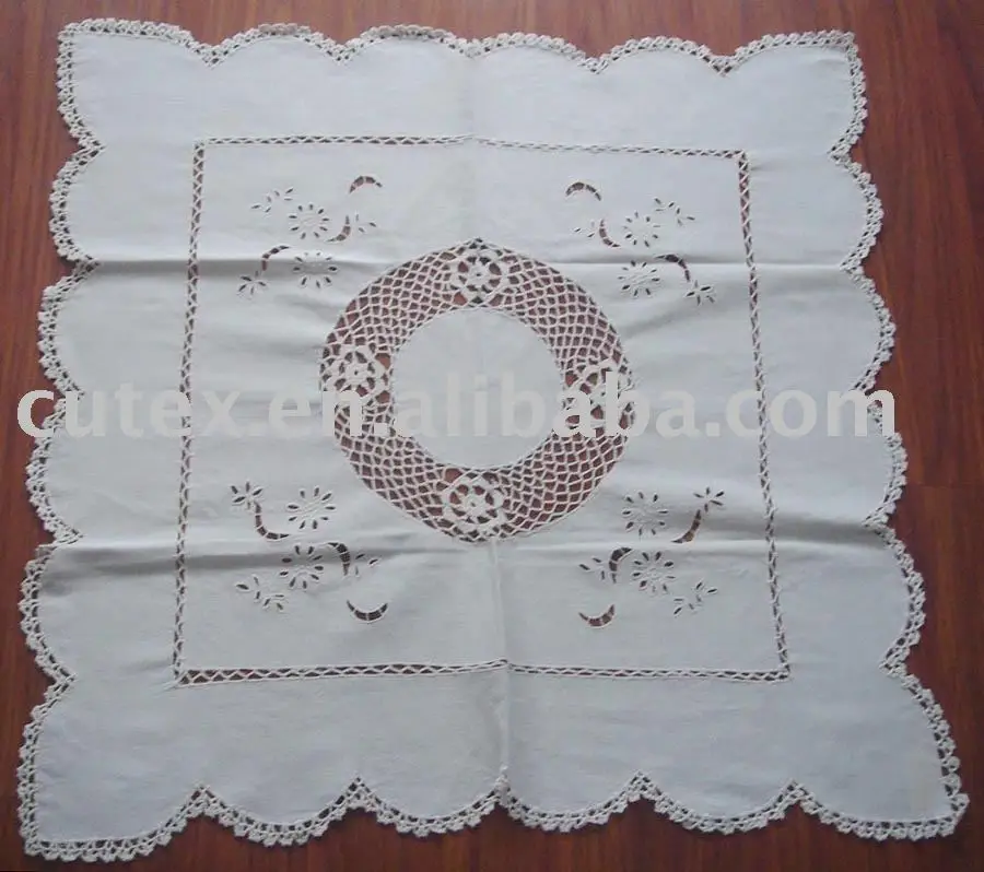 Lino Ricamato Fiore Tovaglia Quadrata All Uncinetto Ebay