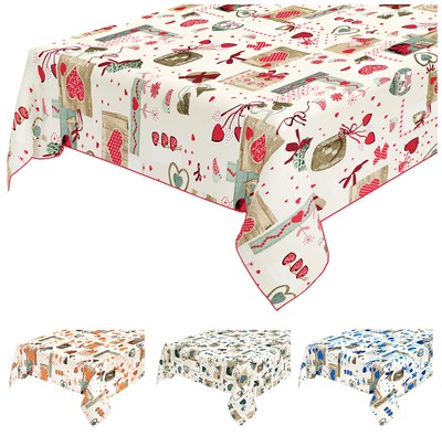 Cotone rivestito il disegno appare solo su un lato del prodotto. Non è necessario lavare i prodotti a mano o in lavatrice. Facile da pulire con uno straccio. Tovaglia antimacchia quadrata questo prodotto e disponibile in otto design prodotto venduto individualmente dimensioni.