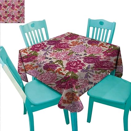 Tovaglia Quadrata In Poliestere Stile Shabby Chic Con Peonie E Fiori Selvatici In Stile Vintage Colorata Lavabile In Poliestere Ideale Per Tavoli Da Buffet Feste Cene Vacanze Matrimoni E Altro 70 Wx70 L Color01