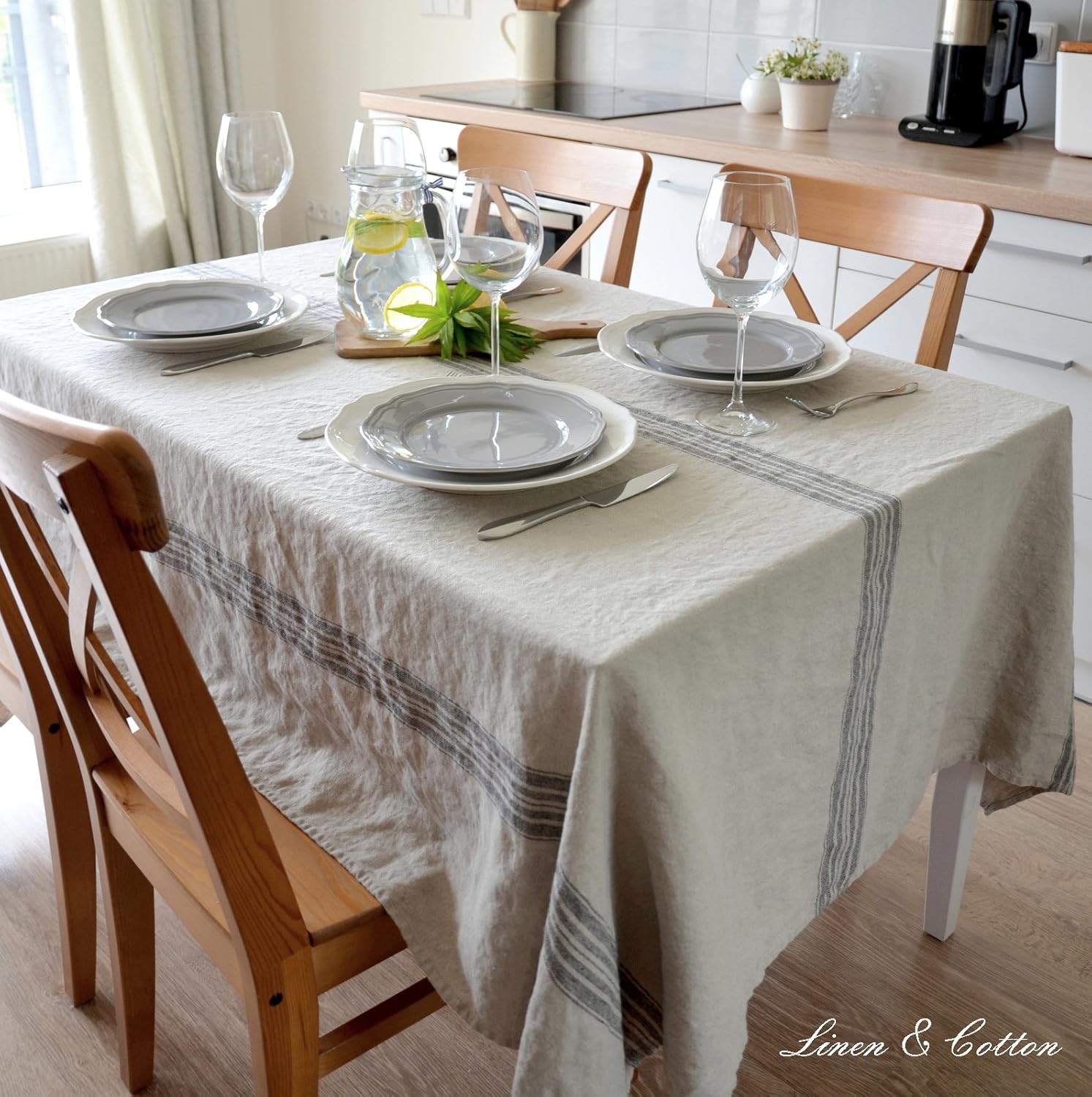 Linen Cotton Tovaglia Da Tavola Rustica Shabby Chic Vintage Provence Tovaglia Quadrata In Tessuto Per La Casa Decorazione Della Cucina Soggiorno 136 X 136 Cm 100 Lino Beige Naturale Blu Tessili