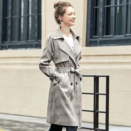 Coat Abbigliamento Da Donna Trench Giacca Lunga A Quadri Bavero Doppio Petto Su Entrambi I Lati Con Cardigan Con Cintura In Vita Tasche Per Top Anelastici L Amazon It Casa E Cucina