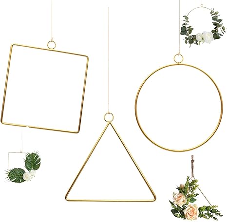 Jun Confezione Da 3 Cerchi In Metallo Con Finitura Dorata Triangolare Quadrati Per Composizioni Floreali Artigianato Anelli Acchiappasogni E Cerchi In Macrame Con 50 M Di Spago Di Iuta Amazon It Giardino