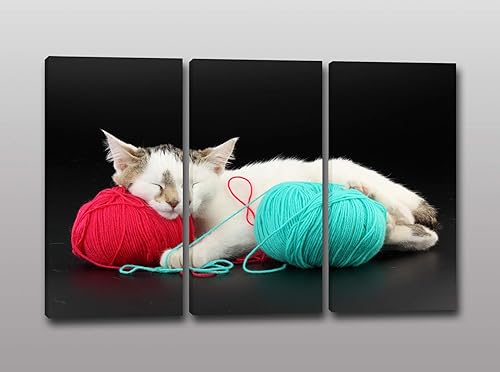 Tris Di Quadri Moderni O Di Quadro Moderno Stampa Su Tela Gatto Arredamento Arte Moderna Quadro Con Gattino Che Dorme Amazon It Handmade