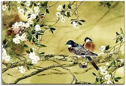 Moxo Bianco Fiori E Uccelli Tela Stile Cinese Quadri Stampe Uccello Pittura Artistica Da Parete Amazon It Casa E Cucina