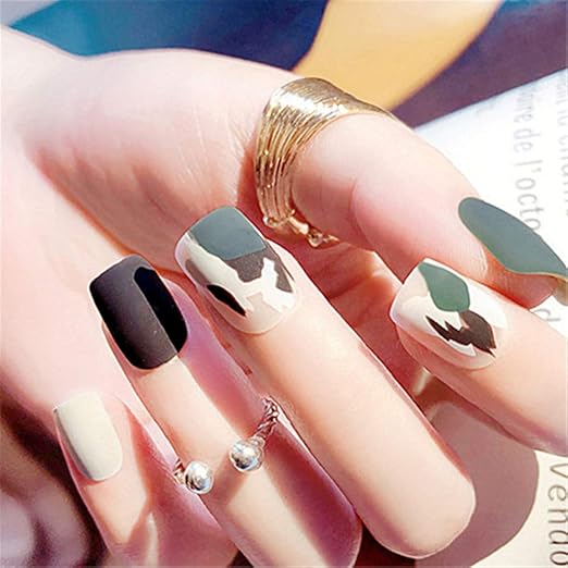 Bloomingboom Unghie Finte Effetto Opaco Rotonde Quadrate Corte Nere Bianche Verde Militare 24 Pezzi Amazon It Bellezza