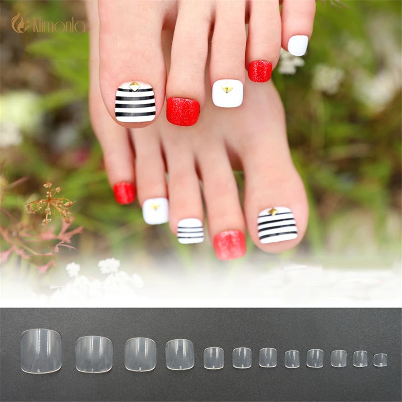 24 Pz Set Abbastanza Rossa Punta Unghie Finte Testa Quadrata Strass Completa Punte Del Chiodo Per Le Dita Dei Piedi Strumento Di Cerimonia Nuziale Della Sposa Con Colla Full Nail Tips Nail Tipstoe False Nails