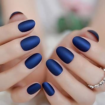 Qulin Unghie Finte Quadrate Medie Opache Unghie In Metallo Blu Scuro Bordi Delle Dita Unghie Mash Up Arte Artificiale Per Un Uso Quotidiano Unghie Amazon It Bellezza
