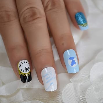 Qulin Unghie Finte Stile Happy Time Stile Antico Orologio Di Bellezza In Acrilico Artificiale Con Punte Quadrate Blu Amazon It Bellezza