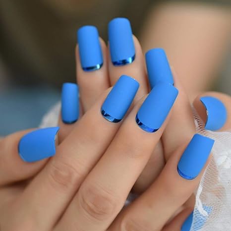 Qulin Unghie Finte Quadrate Opache Medie Blu Cielo Bordo In Metallo Finitura Delle Dita Unghie Mash Up Arte Artificiale Per Tutti I Giorni Amazon It Bellezza