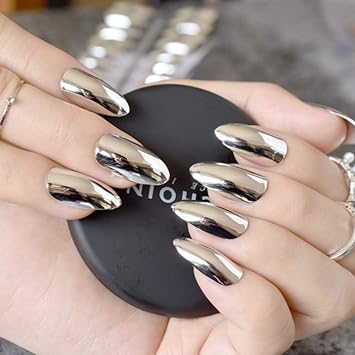 Gel Dipinti A Mano 24 Unghie Finte Blu Metallico Bara A Stiletto Quadrato Ovale Ebay