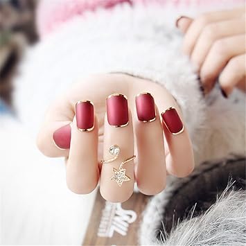 Ljphcc Unghie Finte Rosse Opache Con Anello Colorato Holo Smerigliato Da Donna Finte Unghie Quadrate Finitura Superiore Progettato Suggerimenti Per Le Unghie Con Le Unghie L5109 Amazon It Casa E Cucina