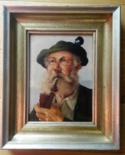 Quadro Olio Su Tela Vecchio Con Pipa Eur 50 00 Picclick It