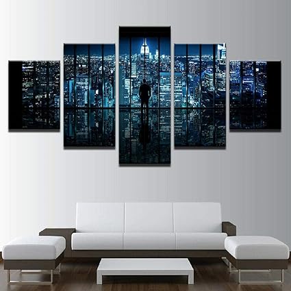 Runtooer Quadro Uomo Solitario New York Citta Notte 5 Pezzi Stampa Su Tela In Xxl Immagini Moderni Murale Fotografia Grafica Decorazione Da Parete Amazon It Casa E Cucina