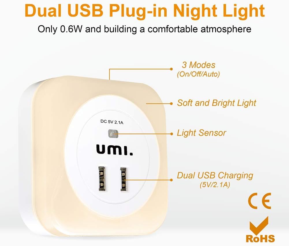 Materiale Elettrico Quadrata Lampada Notturna Led Da Presa Con Sensore Alba E Tramonto E Doppia Presa Di Ricarica Usb Output Totale 2 1 A 9 Lumen Umi Confezione Da 6 By Fai Da