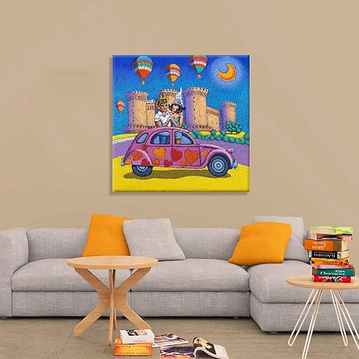 Calisti Stefano Quadro 100x50 Cm Pronto Da Appendere Giallobus Colline Colorate Cielo Verdemare Vari Formati Stampa Su Su Vetro Acrilico Plexiglass Materiali Per Hobby Creativi Tele