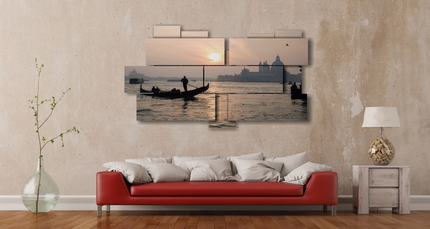 Duudaart Quadri Laguna Di Venezia Al Tramonto 6 Pannelli A Due Livelli 136x91cm Quadri Camere Da Letto Stampe Su Legno Casa E Cucina