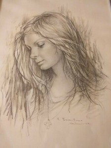 Quadro Giuseppe Tarantino 1977 Ritratto Di Giovane Donna A Carboncino Ebay