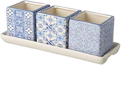 Set 3 Vasi Quadrati Con Sottovaso Fantasia Portoghese