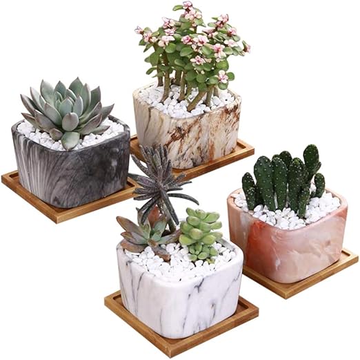 Vasi Quadrati Da 8 9 Cm Vaso Per Piante Grasse In Ceramica Con Vassoio In Bambu E Foro Di Drenaggio Set Di 4 Amazon It Giardino E Giardinaggio
