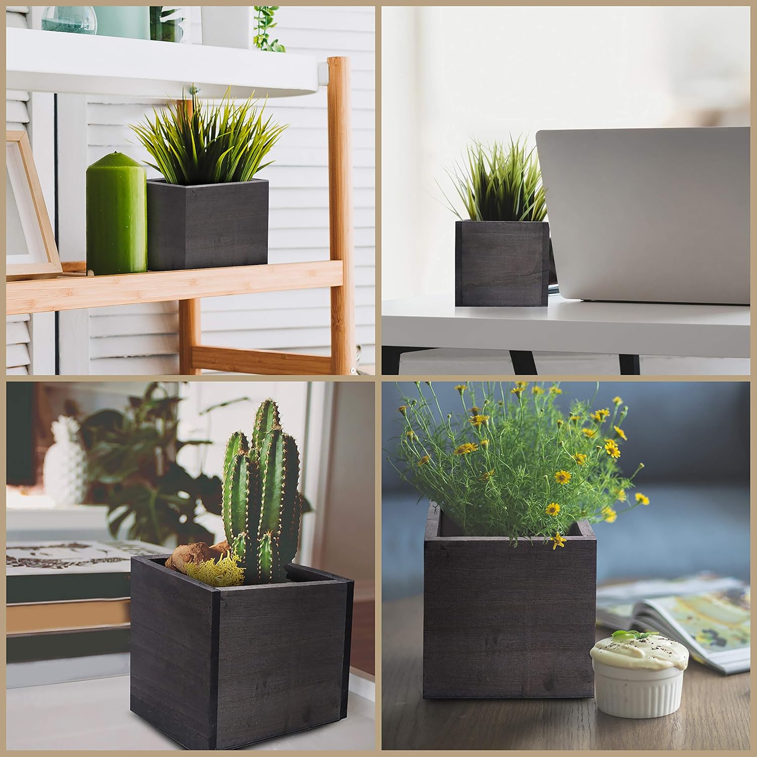 Belle Vous Fioriera Quadrata In Legno 4 Vaso Per Fiori Vaso Per Piante Forte E Durevole Contenitore Per Piante Giardino Patio Balcone Scrivania Scrivania Fioriera Elegante L13 X L13 X H13cm Amazon It