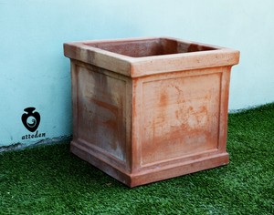 Vaso quadrato terracotta decorato. Il vaso classico quadrato è la giusta scelta per non rinunciare al design anche nelle piccoli dettagli che caratterizzano la quotidianità. L 36 p 36 h 60 kg. Di barani simone c.
