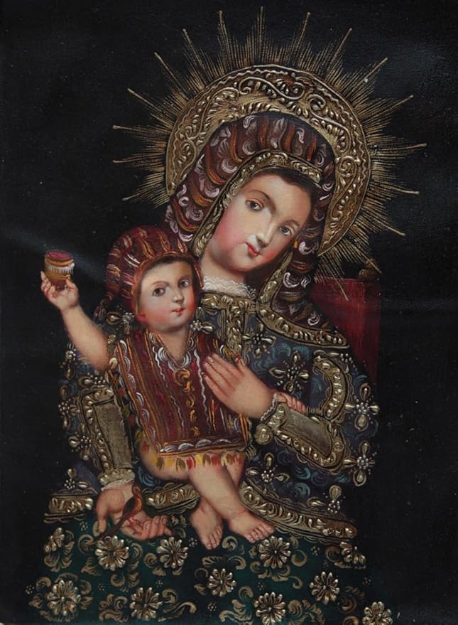 Andes Madonna Bambino Scuola Originale Cusco Peru Arte Popolare Pittura A Olio Su Tela Di Alvarez Amazon It Casa E Cucina