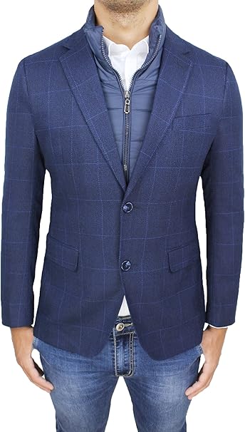 Giacca Cappotto Uomo Sartoriale Blu Quadri Formale Elegante Invernale Con Gilet Interno L Amazon It Abbigliamento