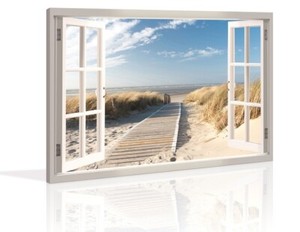 Quadro Su Tela Quadri Moderni Finesta Spiaggia 120 X 80 Cm Modello Xxl 5006 Ebay